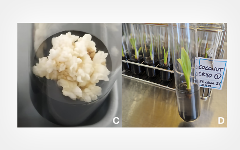 Developing a cryopreservation protocol for the conservation of coconut palm (Cocos nucifera L.) using a novel type of explant, meristematic clumps
